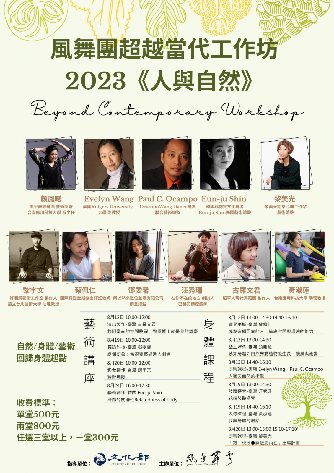 探討當代舞蹈回歸身體起點,試圖討論身體自然與跨入風景,2023年由身心學與當代藝術創作為出發,並提出對舞蹈擴延的探索與實踐,由香港名導黎宇文、韓國非物質文化特許舞者Eunju Shin、美籍舞蹈即興教育家Evelyn Wang、臺灣多媒體藝術家鄧雯馨,臺灣舞蹈藝術家顏鳳曦、黃淑蓮、蔡佩仁、汪秀珊、臺灣稻草人舞團製作人古羅文君,進行身體工作坊與靜態講座,以身體與創作叩問當代表演藝術。引進皮拉提斯與費登奎斯等不同方法對身體的深度解析。進行兩週舞蹈藝術工作坊之靜態講座與動態身體課程,以實作交流與理念對談,並提出對舞蹈肢體擴延的探索與實踐。